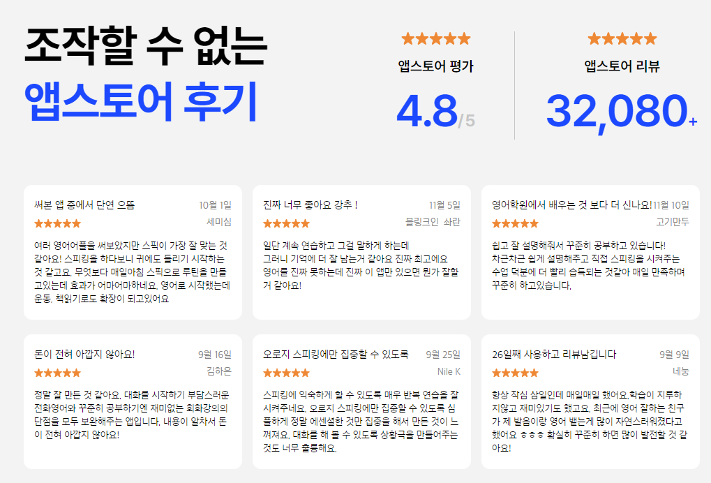 회화 어플임에도 말하기 연습을 제공하지 않는 많은 교육서비스들이 있습니다.
