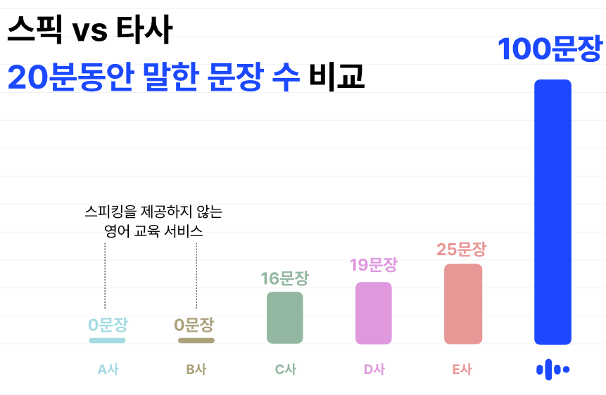 스픽은 타 어플 대비 평균적으로 5배~10배 이상의 발화량을 만들도록 유도합니다.