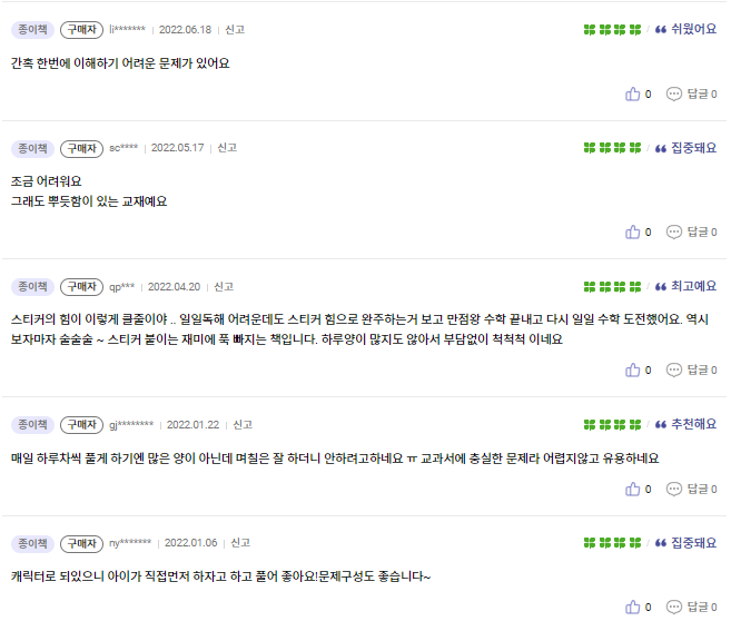 3.매일 하루차씩 풀게 하기엔 많은 양이 아닌데 며칠은 잘 하더니 안하려고하네요 ㅠ 교과서에 충실한 문제라 어렵지않고 유용하네요