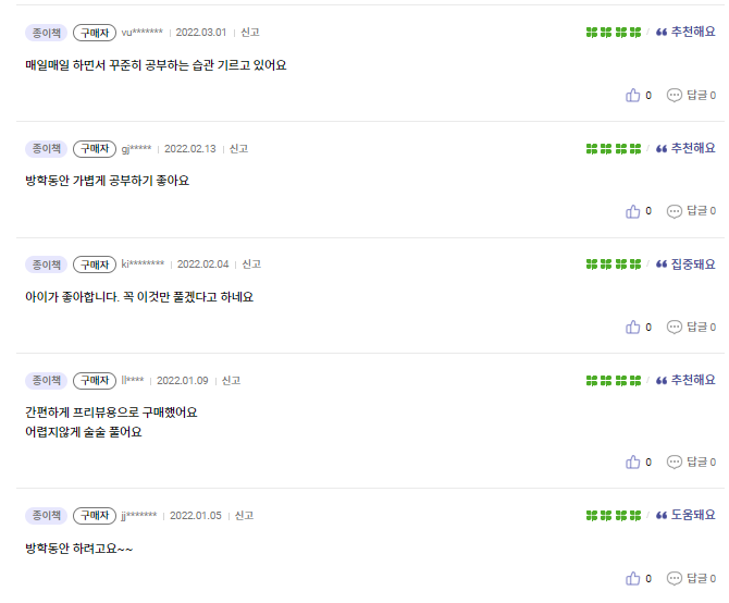 공부하고 채점하려고 할때 답지가 얇아서인지 자주 없어지는 일을 겪습니다.