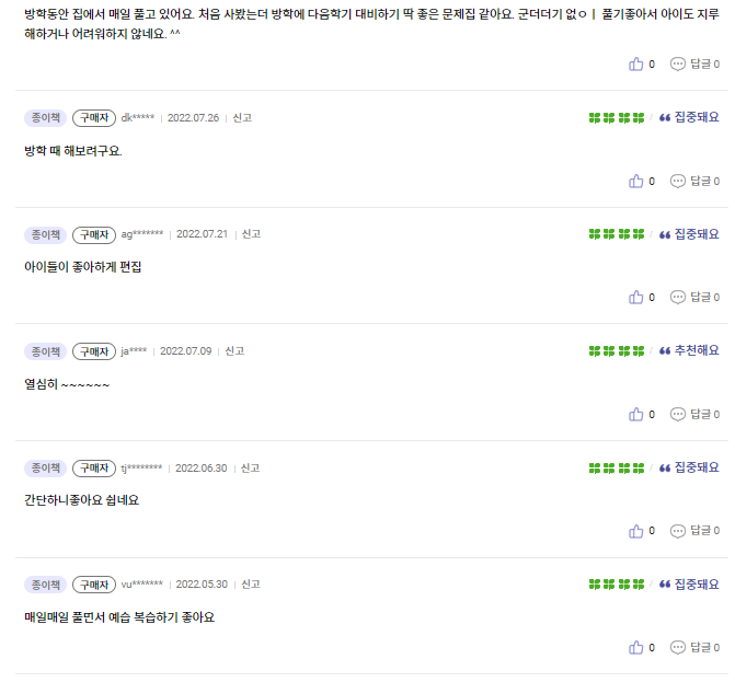 2.방학동안 집에서 매일 풀고 있어요. 처음 사봤는더 방학에 다음학기 대비하기 딱 좋은 문제집 같아요. 군더더기 없ㅇㅣ 풀기좋아서 아이도 지루해하거나 어려워하지 않네요. ^^
